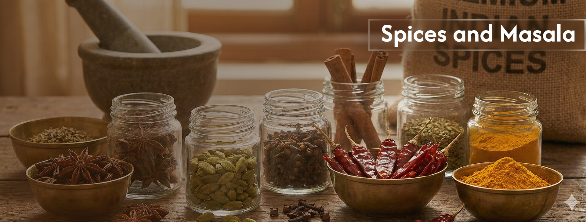 Spices and masalas are aromatic ingredients used to enhance the flavor, color, and aroma of food.
